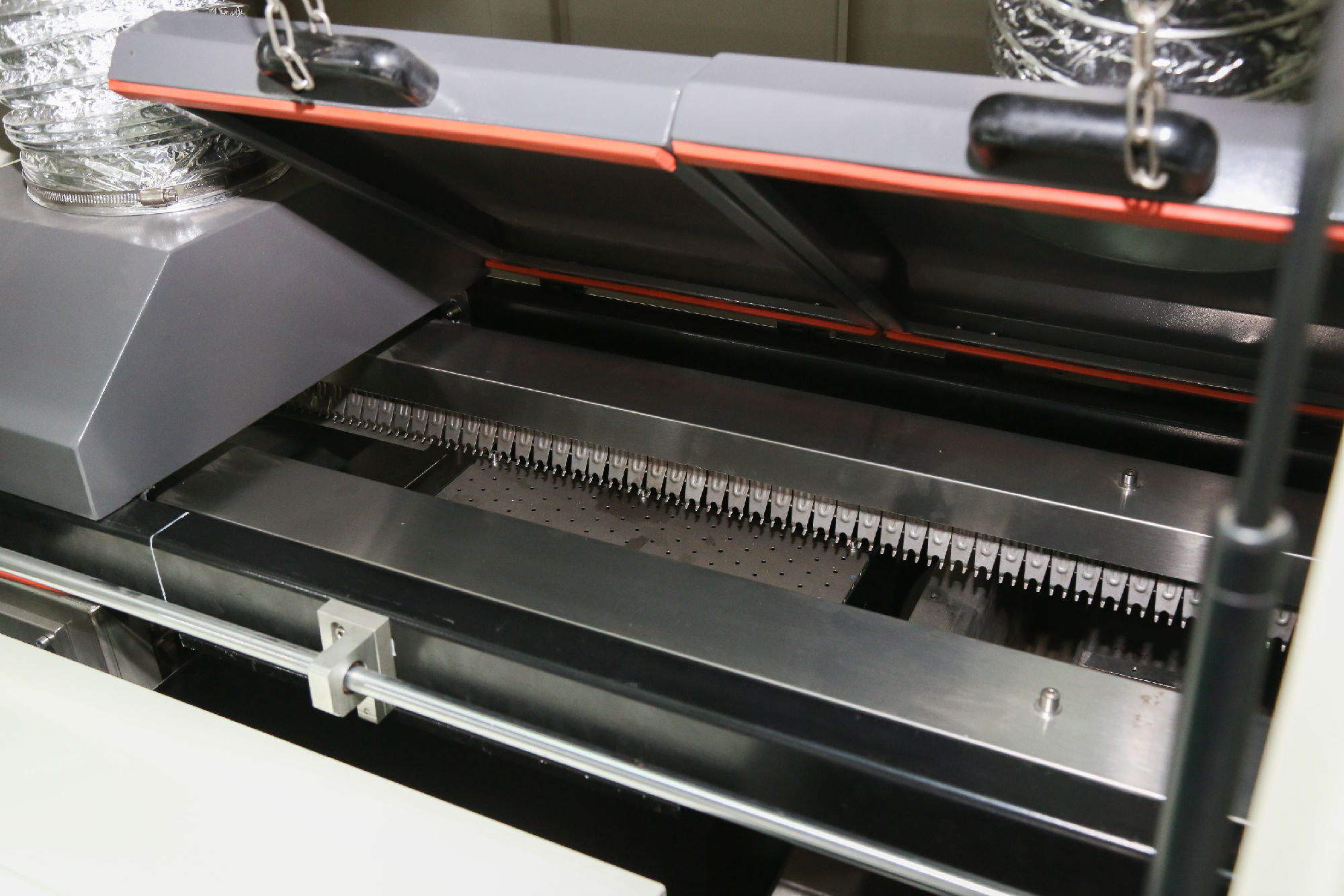 ● 超長熱風預熱均勻迅速抬高PCB板溫度,快卸直拉式設計,維護方便
